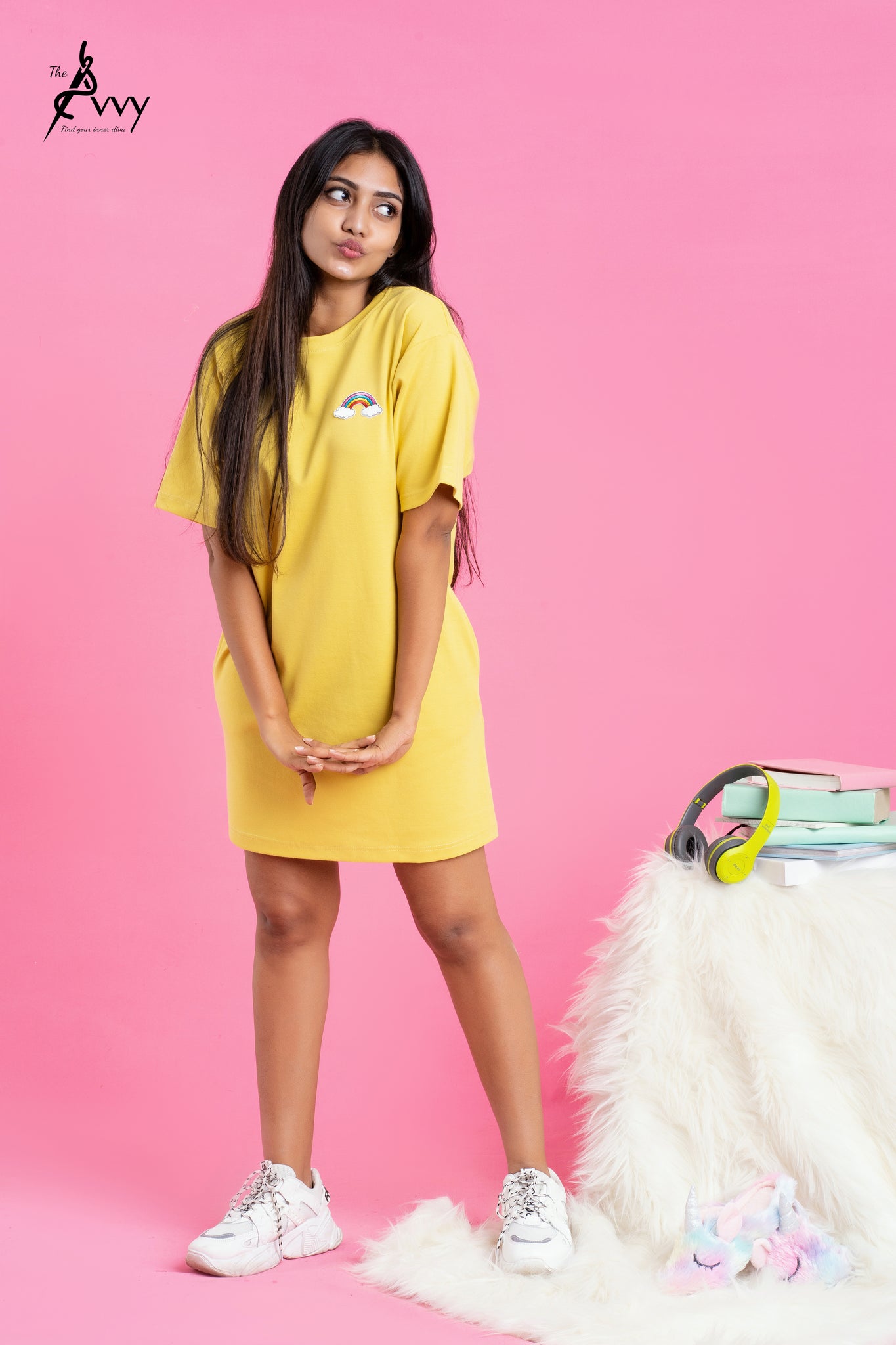 Bumblebee Rainbow Drop Shoulder Tee Dress